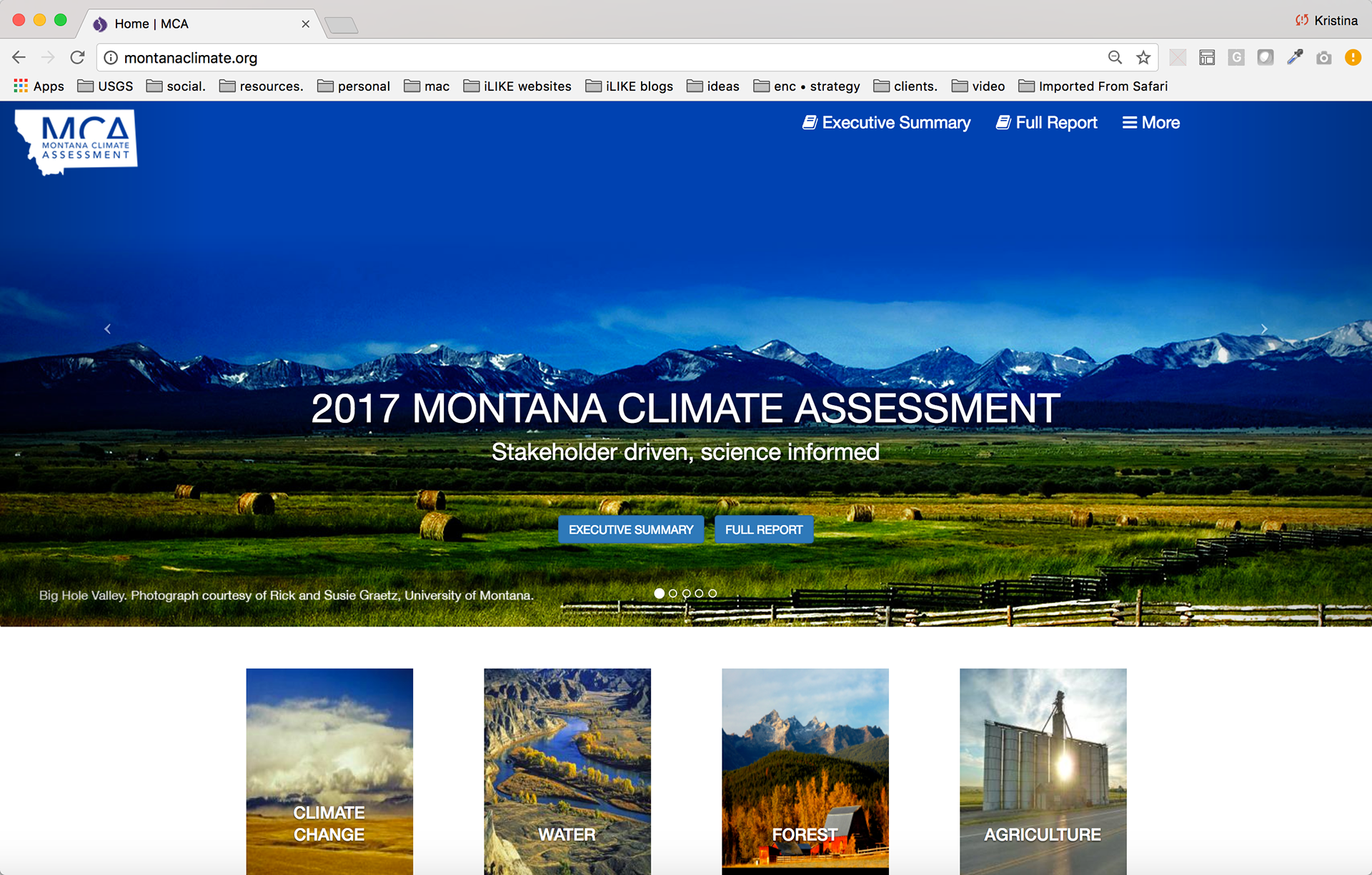 In addition to the assessment and website, I designed information sheets and a comprehensive social media strategy to promote the assessment and capture user feedback and analytics. We held a press conference to launch on September 20, 2017. Please view the website at http://montanaclimate.org.