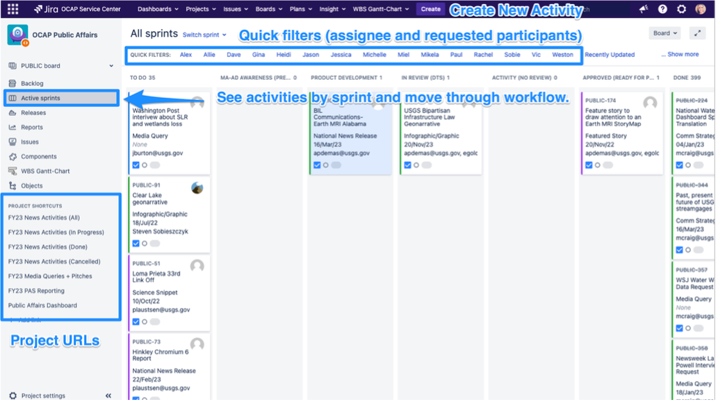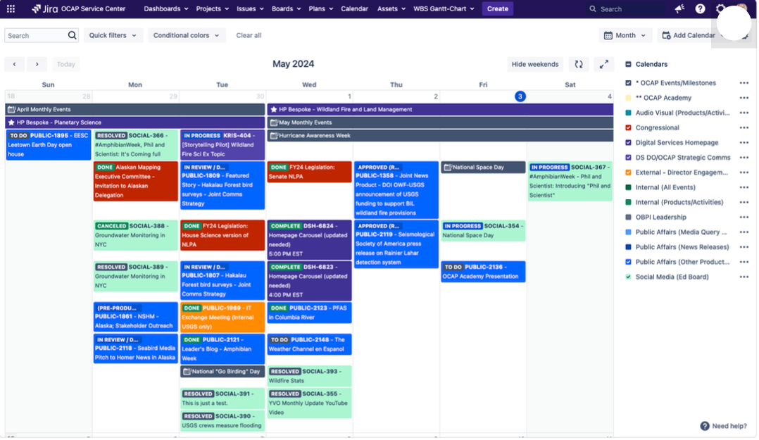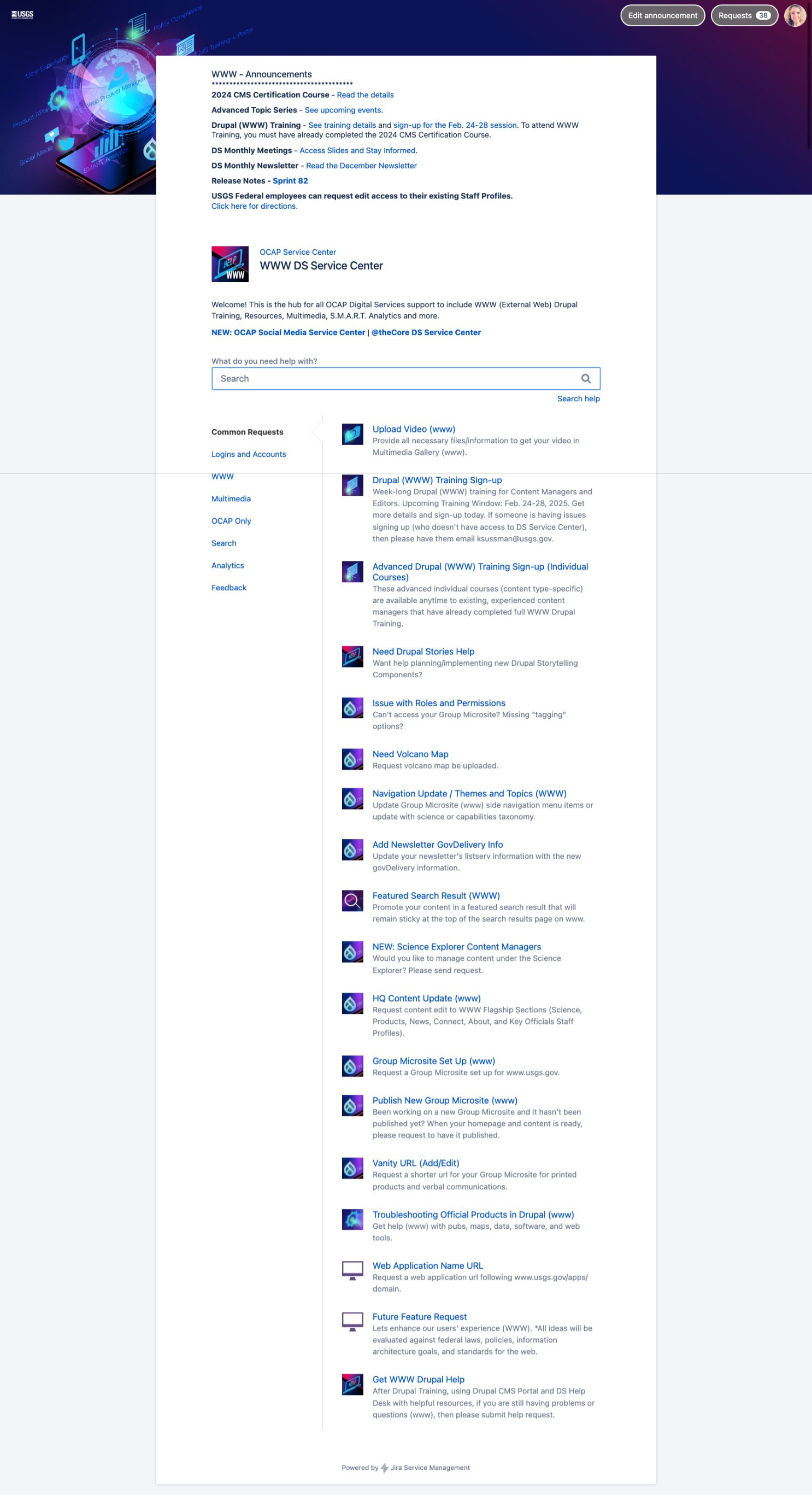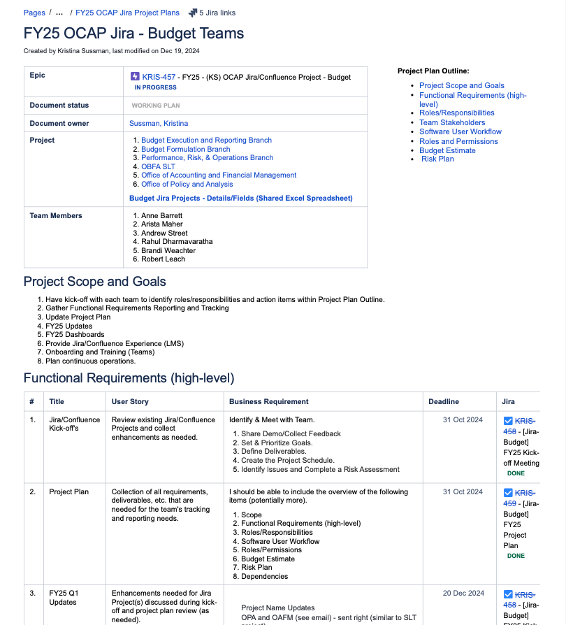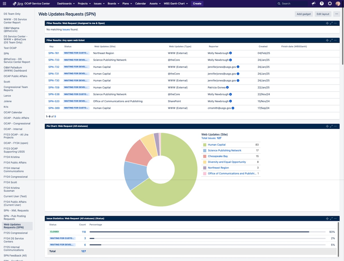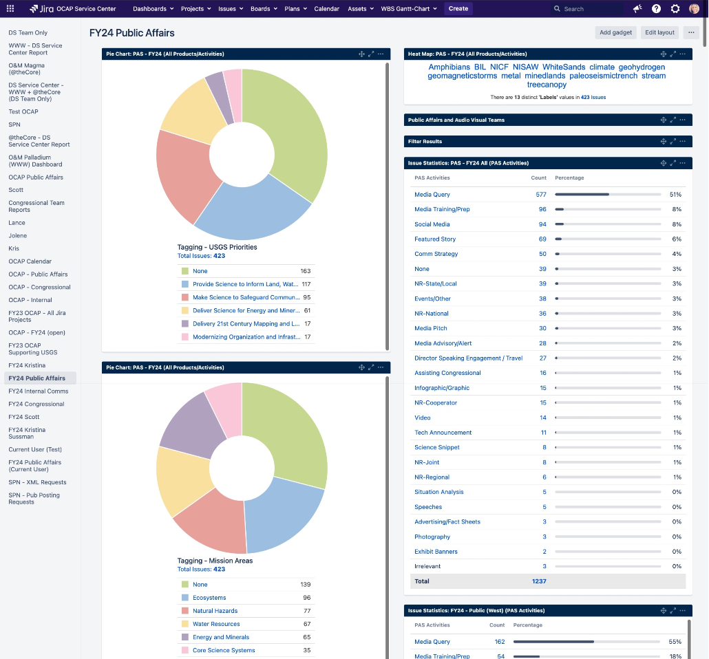 As an Atlassian Jira and Confluence Administrator, I managed, configured, and optimized collaboration and project management environments to support cross-functional teams and streamline workflows for the each team within the USGS Office of Communications and Publishing and each branch of the Office of Budget, Finance and Analysis.