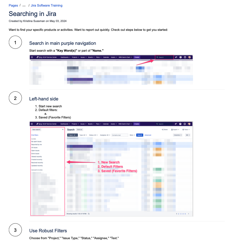 Below is an example of a project plan and a confluence page that would be integrated within LMS portal above and other training documentation.
