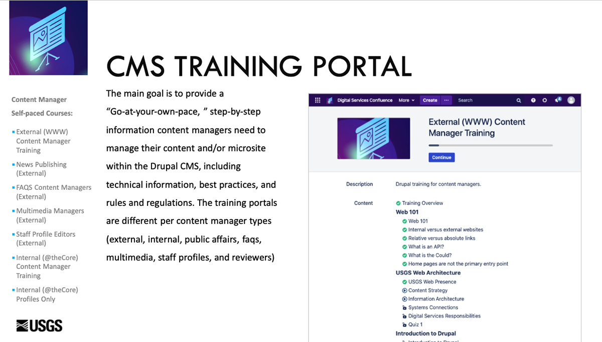 Above is the use of Confluence and Learning Management System (LMS) for Content Management Training.