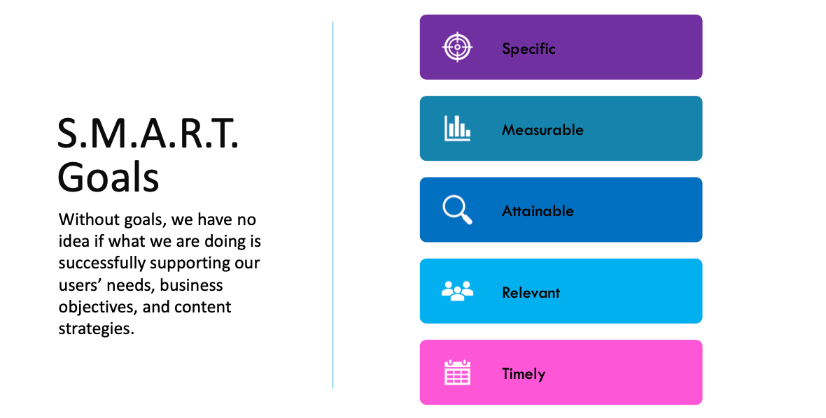 Easily accessible dashboards, hosting monthly trainings with stakeholders, and providing yearly annual reports was one of my major initiatives to help all levels of management to track and/or enhance content strategies using specific metrics for the following areas: