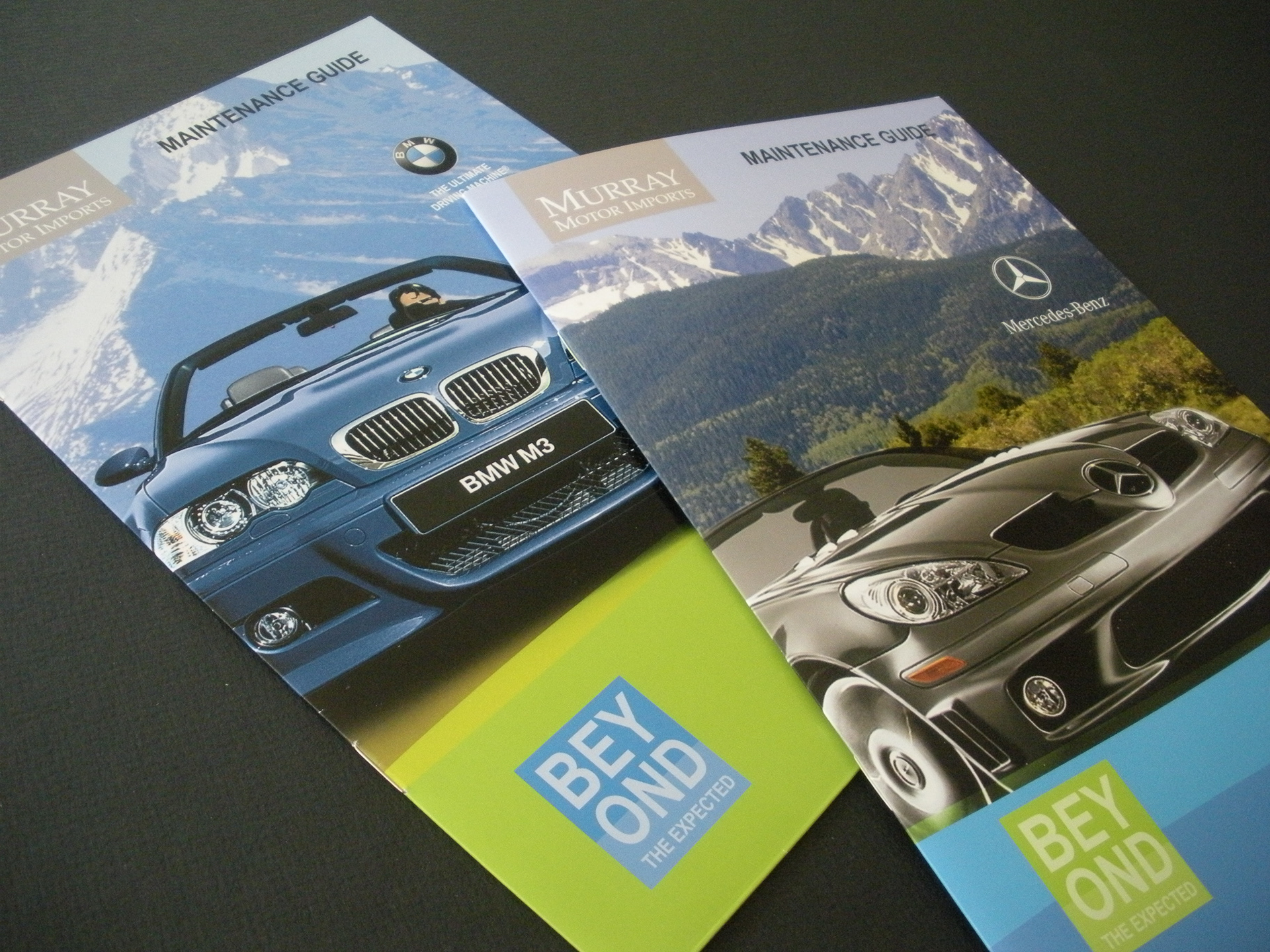 The maintenance brochures were created with the Murray Motor Imports brand, which included grand exciting photography with the elements of their “wave.” This is one of many marketing materials that have been created for the number one Mercedes-Benz and BMW dealership in Colorado. Others included: advertisements, monthly direct mail pieces, van wrap designs, signage, and a complete brand for their new body shop.